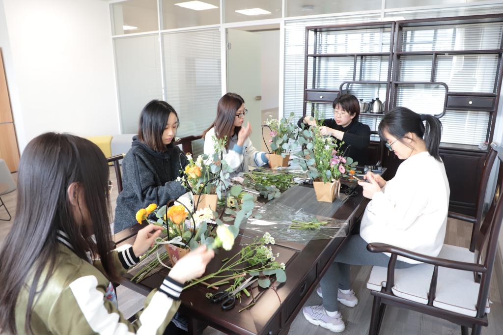 阳春三月,在第112个国际劳动妇女节到来之际,为进一步丰富女职工的文化生活,提升审美修养,加强交流,增进感情,智能公司工会分委会举办庆“三八”女教职工创意插花活动。