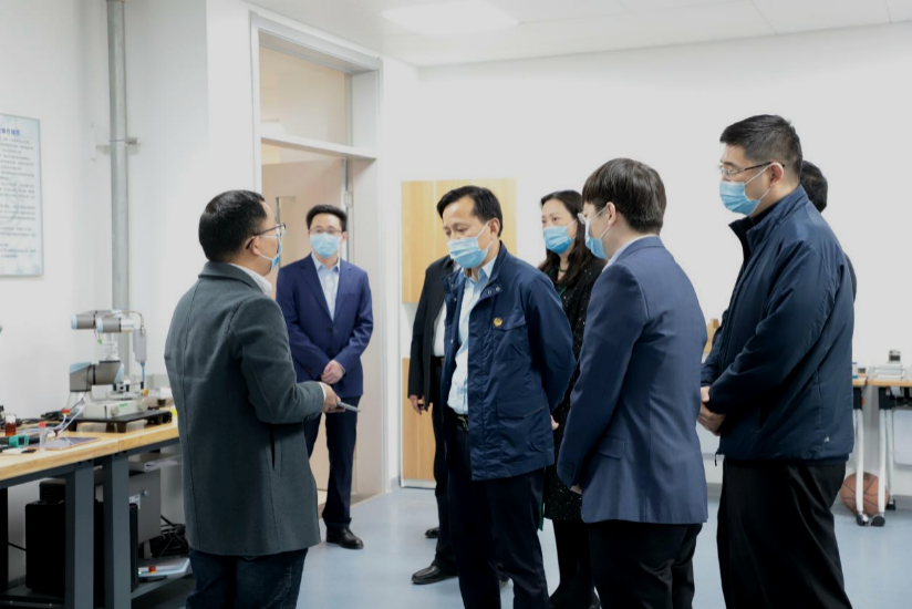 韩军感谢于长斌作为区政协委员认真履职,积极为辖区建设和校地合作建言献策,认真听取了于长斌关于公司建设、学科发展情况的介绍,实地察看质谱大数据平台和智慧生物医疗机器人实验室,现场了解公司人才引进、科技创新、招商引资、发展愿景等情况,双方围绕产学研一体化助力济南国际医学科学中心建设进行了深入交流。