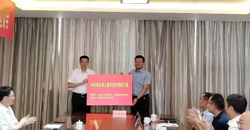 座谈会上,张大勇向韩金祥一行介绍了省派工作队的工作职责,今年以来开展的工作情况和下一步工作重点,田婷婷介绍了河东区的基本情况。韩金祥对驻河东区省派工作队的工作给予肯定,向临沂市、河东区对省派工作队的大力支持和对队员们的关心照顾表示感谢。他表示,校(院)自成立以来,始终践行以人民为中心的发展思想,致力于医疗卫生工作重心下移、医疗卫生资源下沉,全力助推乡村振兴战略实施。此次校(院)与驻临沂市省派工作队共同启动乡村医生线上医疗技术更新工程,将更加有效地提升农村基层医护人员业务能力,让百姓获得更加全面、便捷的医疗服务。希望临沂市与校(院)进一步加强合作,共同为打造乡村振兴齐鲁样板,为推动健康中国、健康山东战略在临沂落地生根贡献力量。