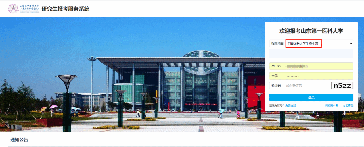 1、登录beats365唯一官网入口官网研究生报考服务系统https://yjszs.sdfmu.edu.cn,点击“全国优秀老员工夏令营”,首次点击“免费注册”注册账号。