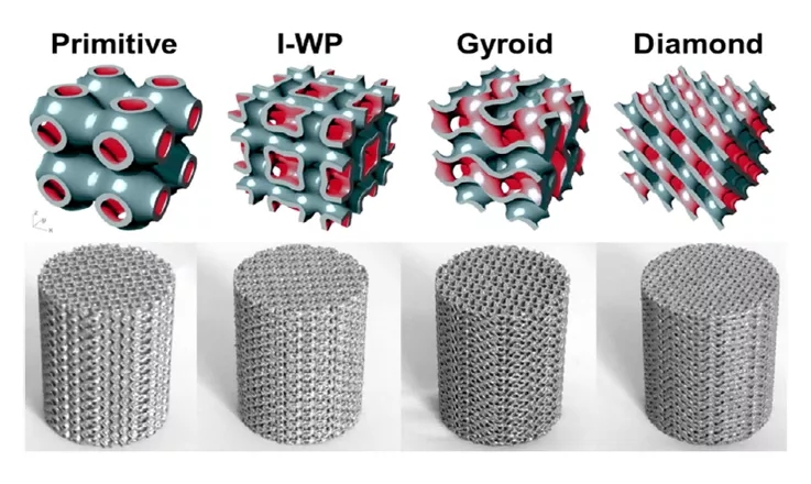 许铎课题组通过开发三周期极小曲面多孔结构参数化设计软件,并结合金属3D打印技术,证实了与传统桁架点阵结构相比,三周期极小曲面多孔点阵结构在相同孔隙率下,具有更高的比表面积,更出色疲劳性能与更低的弹性模量,能够显著提升骨整合效果,为后续三周期极小曲面多孔结构在骨替代方向的应用进一步研究奠定了坚实基础。