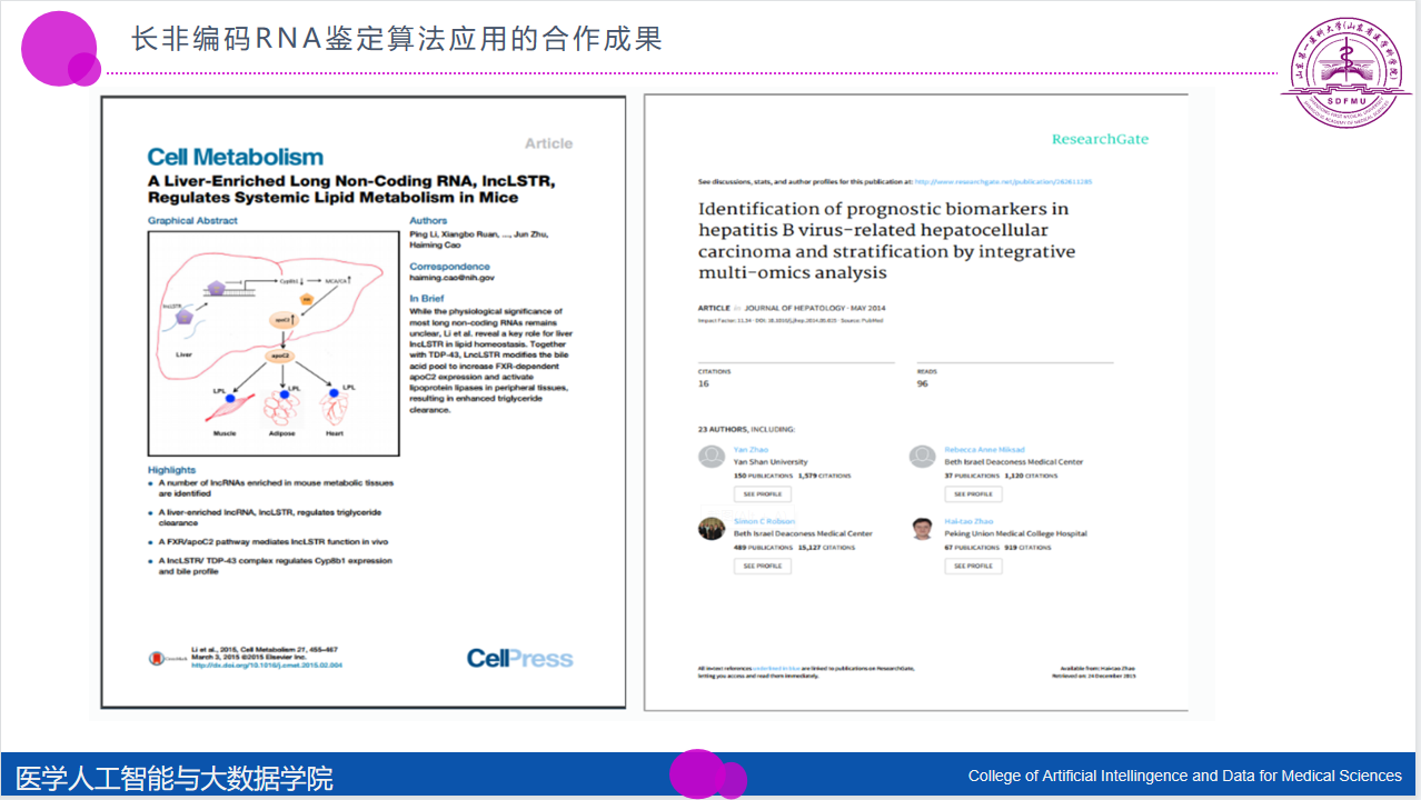 孙亮教授所在团队还提出了针对非编码RNA鉴定与功能注释的一体化流程,以及在大规模物种中批量鉴定全新的长非编码RNA。这些算法在后续的临床应用中也取得了重要成果。