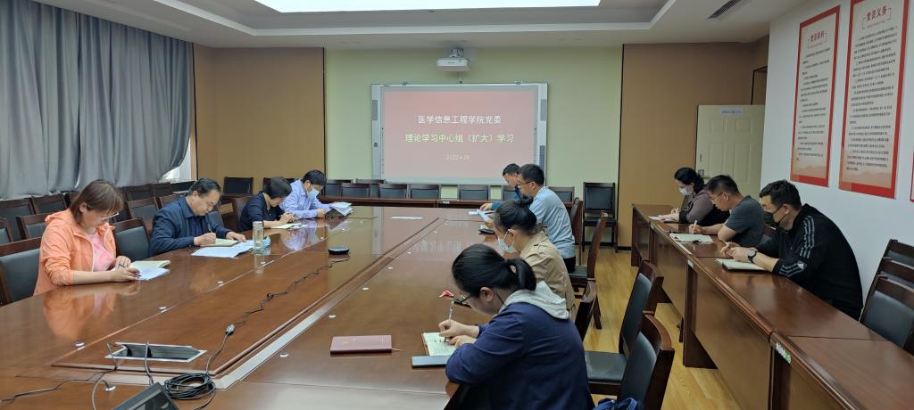 4月26日下午,医学信息工程公司党委组织理论学习中心组(扩大)召开2022年第二次集体学习会议,认真学习贯彻《黄河流域生态保护和高质量发展规划纲要》有关重要精神,并深入学习研讨《习近平关于统筹疫情防控和经济社会发展重要论述选编》。会议由公司党委书记张兆臣主持,公司党委委员、各党支部书记和科级干部参加。