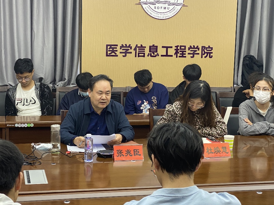 4月20日上午,离退休工作部党委第二党支部联系公司2021级电子信息科学与技术(校企合作)本科1班全体同学开展了主题为“学习崇高精神,保持健康心态,努力成长成才”的“领航工程”活动。参加会议的有离退休工作部党委书记王维涛、副部长聂磊、徐用、孔祥军、在职第二党支部委员、医学信息工程公司党委书记张兆臣、辅导员杜焕慧老师。