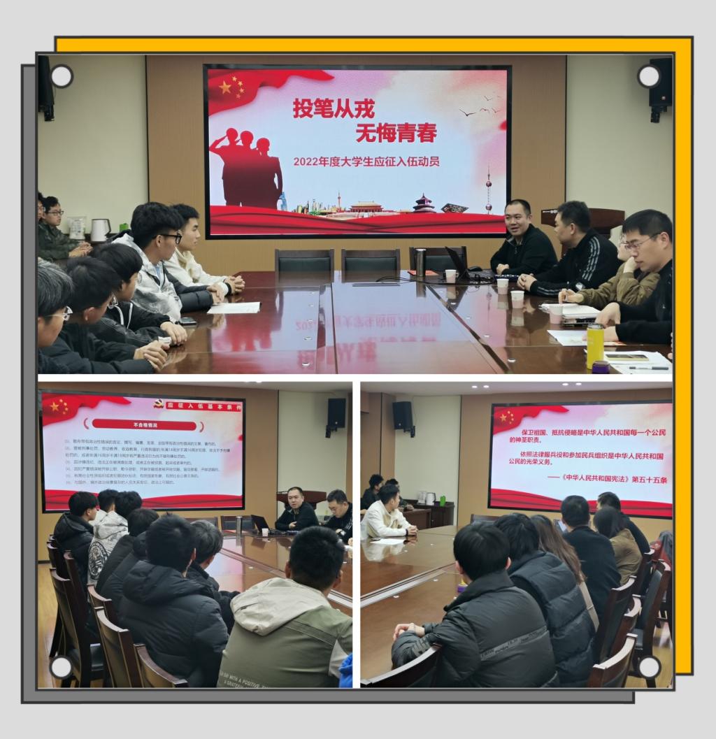 为了激发员工报效祖国、应征入伍的热情,帮助老员工了解、掌握应征入伍相关政策。12月10日下午,公司在物理楼会议室召开2022年度老员工应征入伍动员会,邀请员工工作部安文老师作为主讲人,为同学们做征兵事宜讲解。活动由学工办主任赵鑫主持,团总支副书记吕海东、辅导员印珺雯、杜焕慧、退役复学员工张浩楠、安洪刚以及有志参军的员工参加了本次动员会。